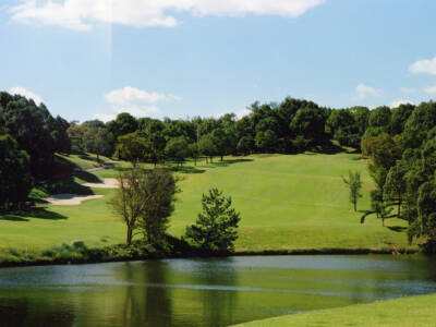 大小合わせ12個の池が配されたコースや、クラブハウスから見える滝など水をひとつのテーマとしています。アウトの8番ホールからは美しい播州平野の景色をお楽しみいただけます。「林間」と「高原ゴルフ」が一度に味わえる風光明媚な美しいコース。